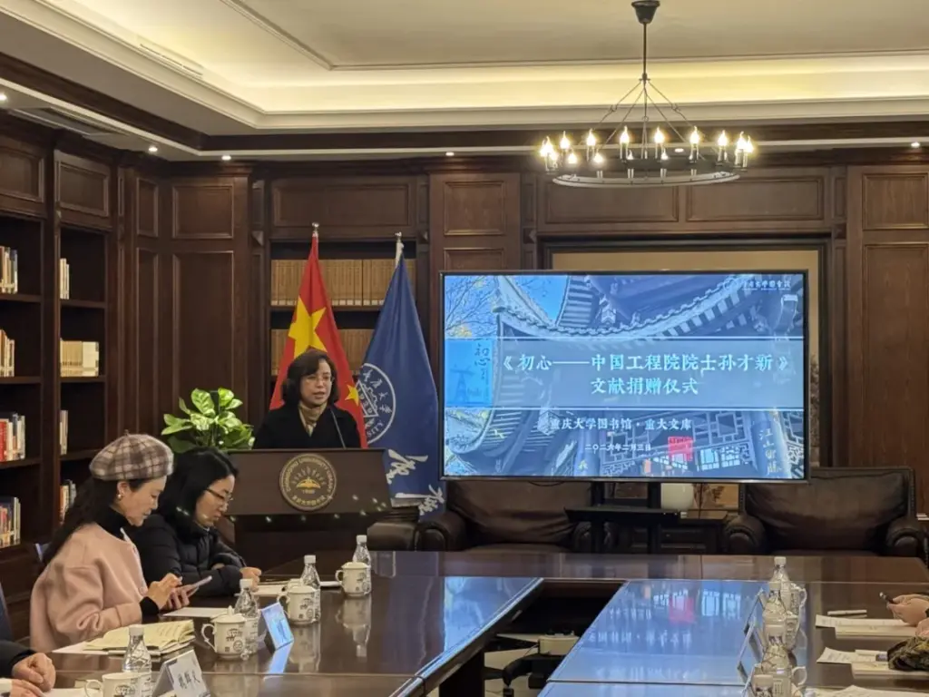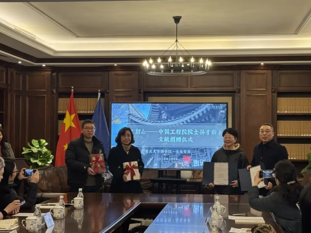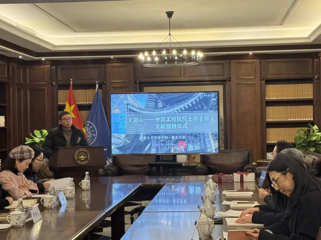 冬日和风润学府,文脉传承暖人心。2026年2月3日,《初心——中国工程院院士孙才新》文献捐赠仪式在重庆大学图书馆重大文库隆重举行。孙才新院士教育基金管委会主席吴绍琪,重庆大学电气工程学院党委书记胡建林、副书记王晓静,出版社总编辑游滨,图书馆党总支书记何栎、馆长魏群义及图书馆各部门主任、馆员代表齐聚一堂,共同见证这一承载学术记忆与精神传承的重要时刻。